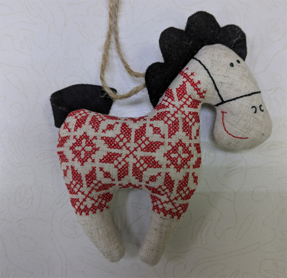 Магкая игрушка с вышитым белорусским орнаментом.