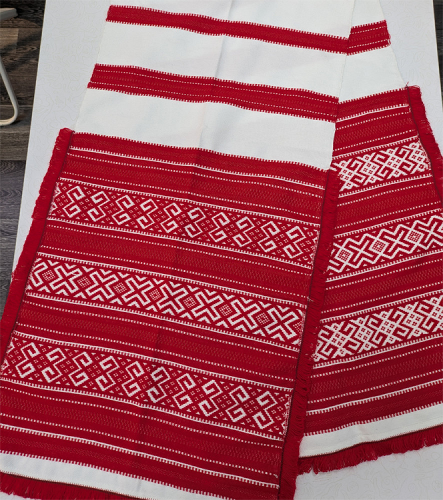 Традиционный рушник ручного ткачества на кроснах. Изготовлен в деревне Неглюбка народным мастером Татьяной Суглоб. Размеры 155 на 37 см.